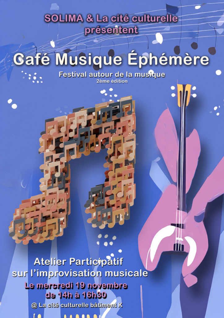Ce mercredi 19 novembre, La cité culturelle vous propose un atelier autour de l’improvisation musicale qui aura lieu de 14h à 16h30 à La cité culturelle, bâtiment K.