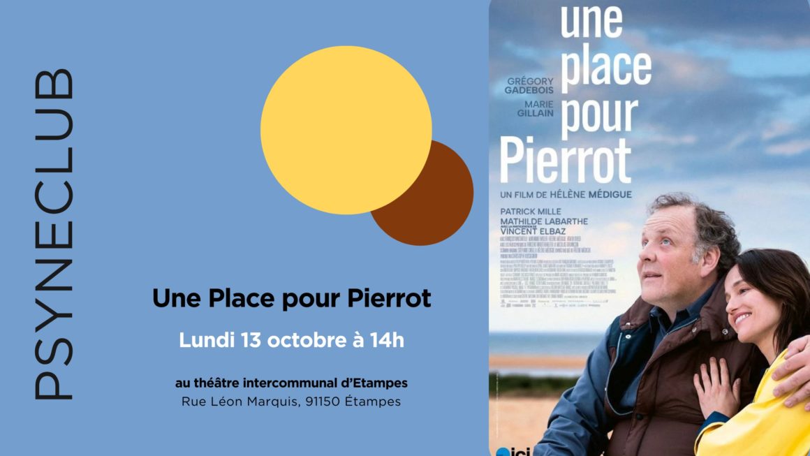 Le Psyneclub du mois d’octobre vous propose la projection du film « Une Place pour Pierrot » le lundi 13 à 14h suivi d’un débat autour du film, au théâtre intercommunal d’Étampes, rue Léon Marquis.